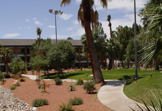 Este complejo será tu hogar lejos de casa cuando visites Mesquite. Tanto si te relajas aquí después de una activa excursión de un día a un parque nacional, como si sólo quieres quedarte en la propiedad tomando el sol y contemplando el hermoso paisaje montañoso, serás feliz. El terreno está meticulosamente cuidado. Húndete en el jacuzzi y deja que la bañera de hidromasaje alivie las tensiones. Trae a toda la familia: todos disfrutarán de la calidez pueblerina y genuina del servicial personal. Los huéspedes pueden elegir entre un estudio con cocina parcial para dos personas, un apartamento de un dormitorio con minicocina o cocina completa para cuatro personas, o un apartamento de dos dormitorios con minicocina o cocina completa para seis personas. El complejo alberga su propio casino y espectáculos en directo. También encontrarás varias piscinas al aire libre, un restaurante, tenis, sauna, sala de juegos y mucho más.
