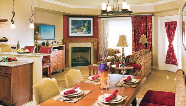 Vino Bello Resort features 116 units and a host of upscale amenities. Vino Bello Resort features spacious studio, one- and two-bedroom resort suites that comfortably sleep two to six guests and range from 493 square feet to 1,329 square feet. Suites feature one king or two double beds in the studio with one king bed and a queen sleeper sofa in the one-bedroom and two king beds with a queen sleeper sofa in the two-bedroom. You will appreciate the convenience of a kitchenette or full kitchen, separate living and dining areas, a washer and dryer, TVs throughout and furnished patio or balcony in all suites. Indulge in a jetted whirlpool tub and over-sized walk-in shower (in most suites) and cozy up to the fireplace in the one-bedroom units.